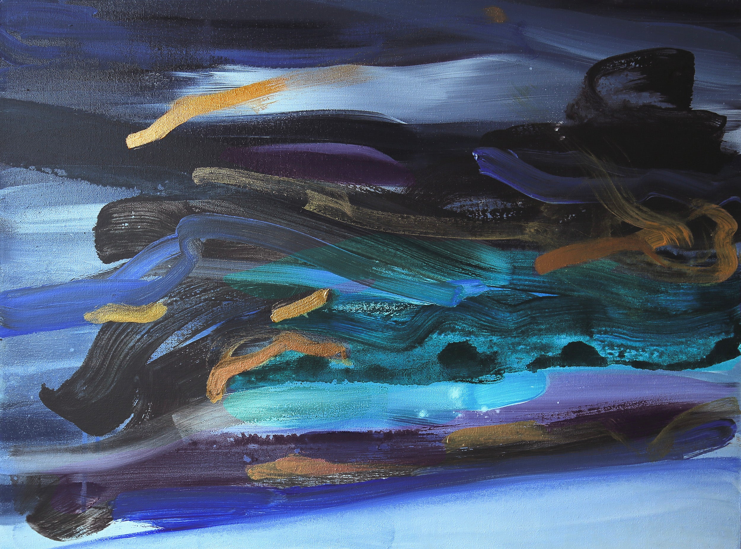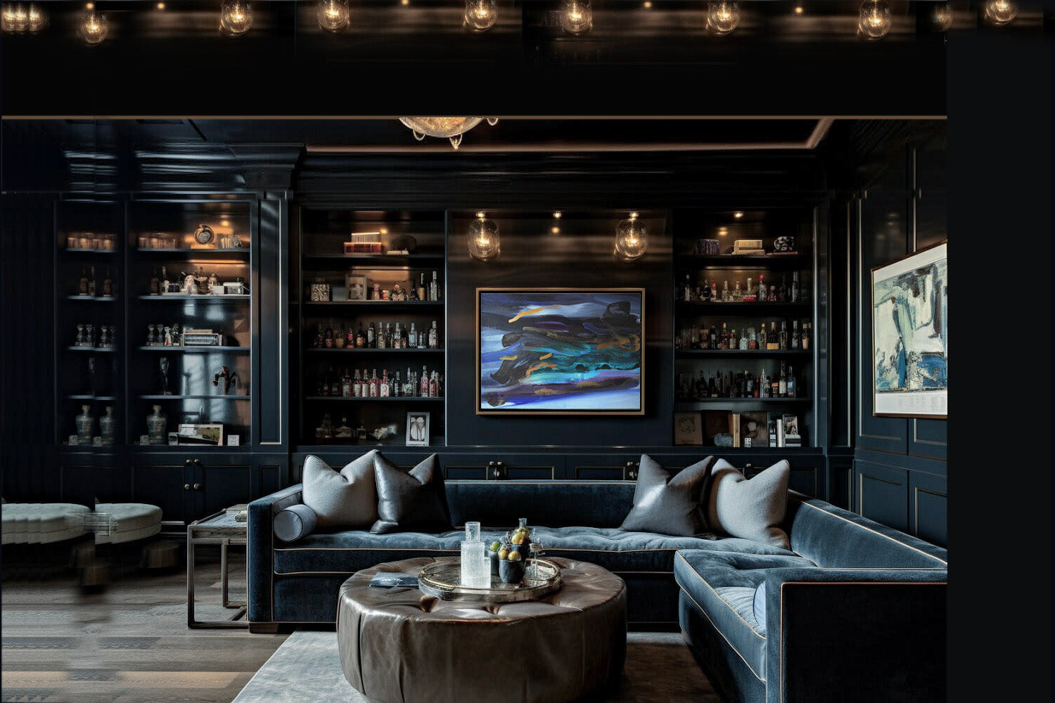 I'VE ALWAYS WONDERED if the ocean was lonely at night. I've since learned that night is when everyone comes out, up to the surface to feed under the cover of darkness. This nocturnal seascape painting, encapsulated within this exquisite abstract expressionist composition has been meticulously rendered with premium-grade acrylics and delicately painted metallics, the artwork commands attention with its nuanced portrayal of the ocean's majesty. Through the subtle interplay of deep indigos and luminescent hues, I have conjured the tumultuous yet enchanting essence of the nocturnal waters.This transcendent piece offers a profound exploration of the human experience and the timeless allure of the ocean.